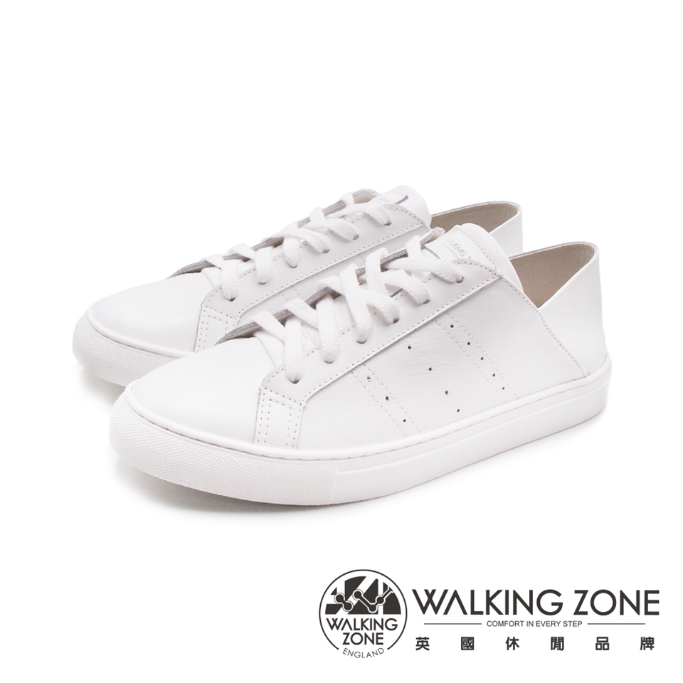 A. WALKING ZONE(女)經典綁帶平底小白鞋 休閒鞋 女鞋-白