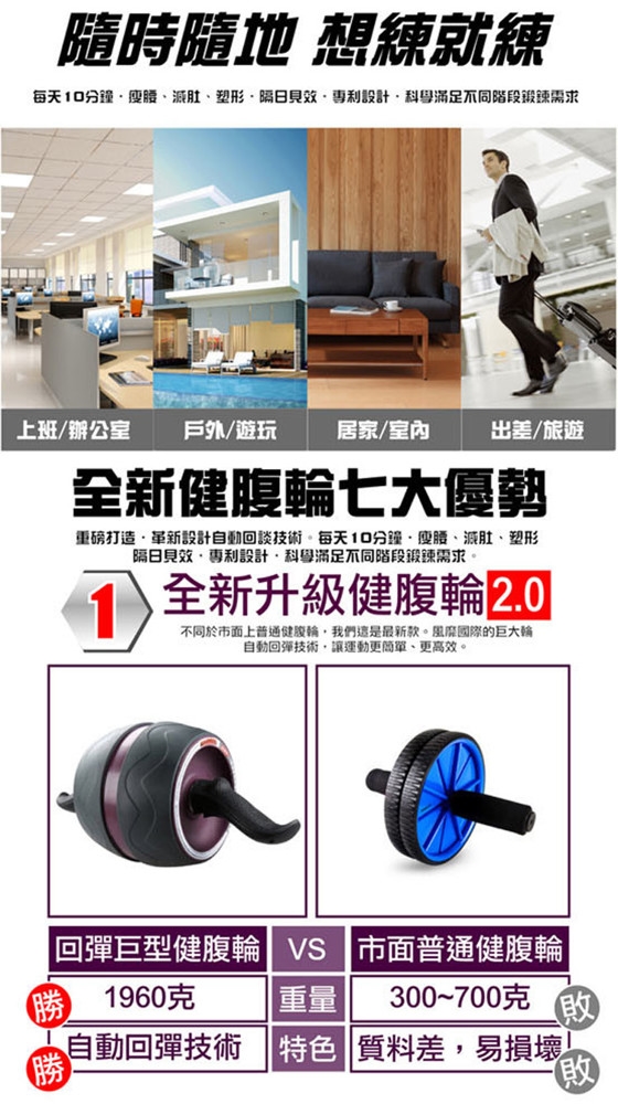 不論你是健身新手還是老手,這顆回彈輪都能幫你練出令人羨慕的腹肌線條!