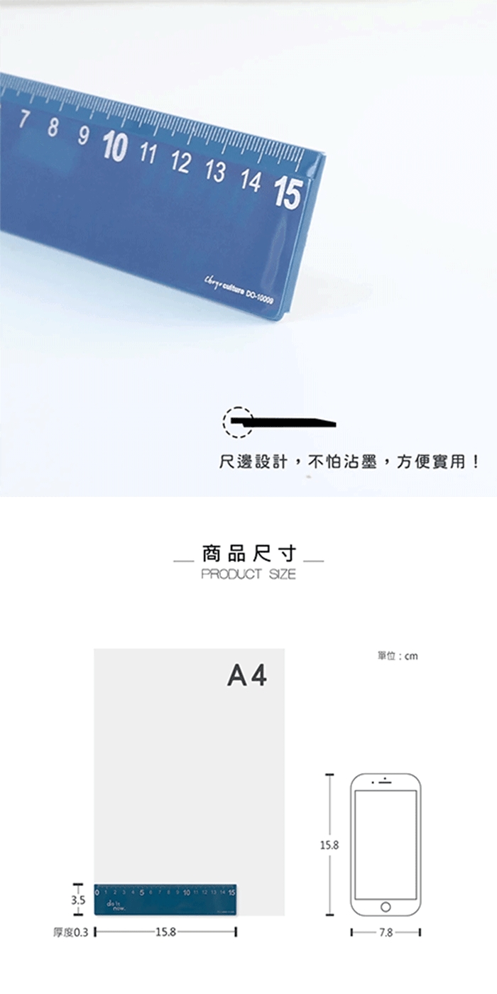 ★ 略有高度的尺邊溝槽設計不易沾墨、易拿取