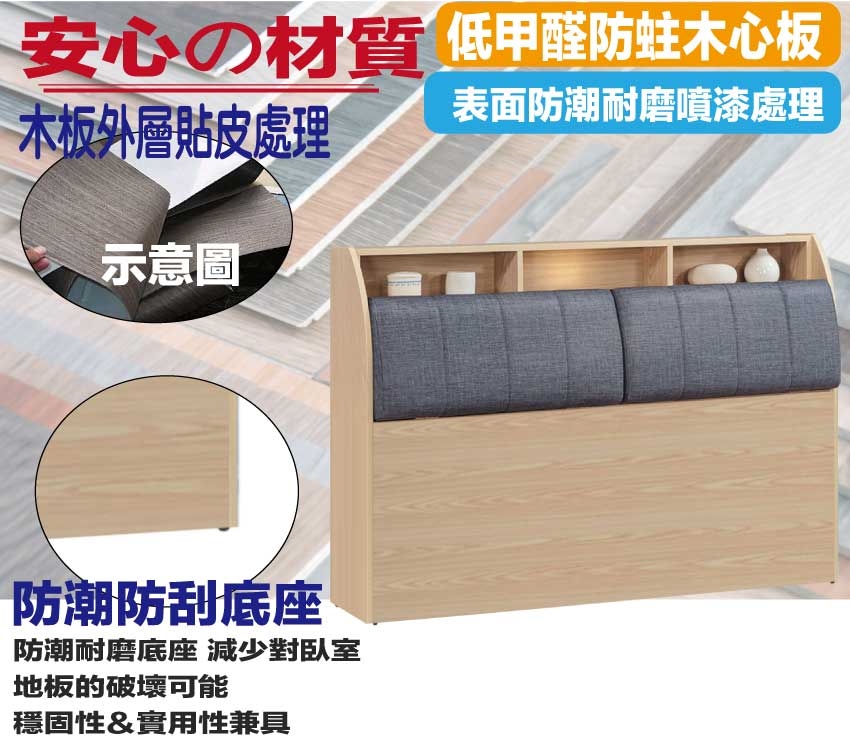 採用防蛀木心板+防潮耐磨底座+耐磨耐刮皮革+高彈力泡棉等安心材質製造
