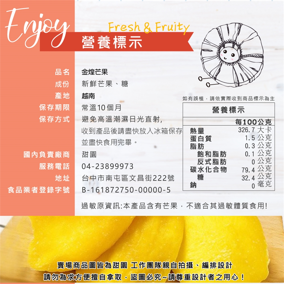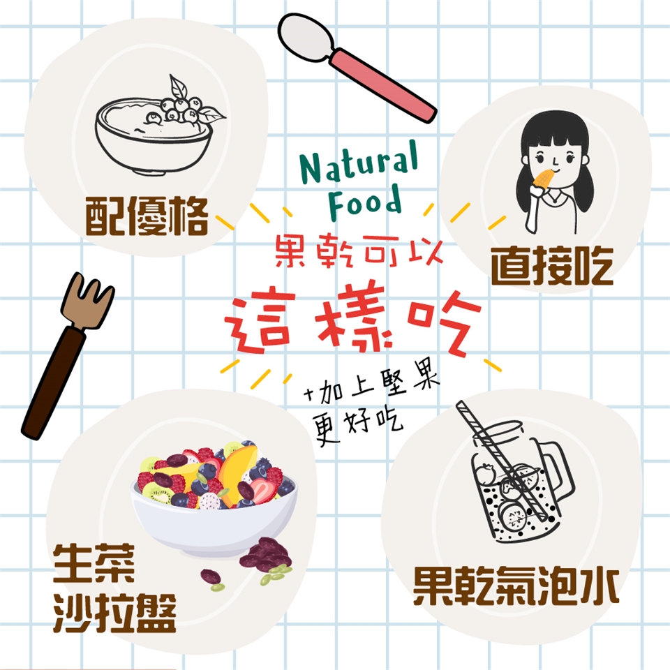 2.保存方式:果乾皆無防腐劑,因此避免高溫潮濕日光直射,