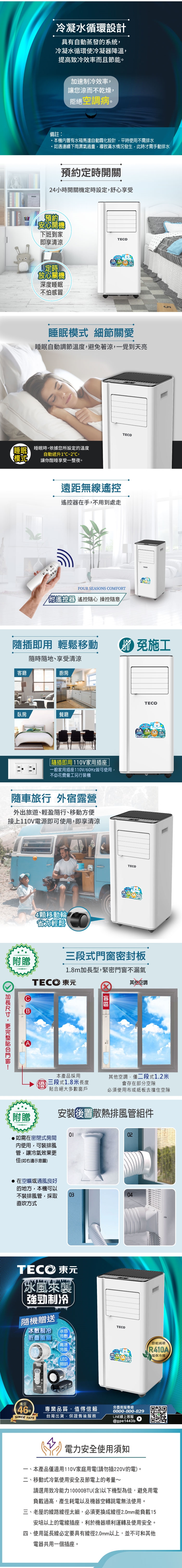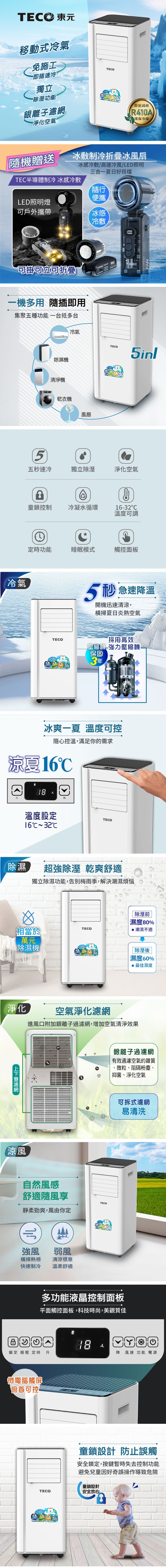 【TECO東元】多功能清淨除濕移動式冷氣機