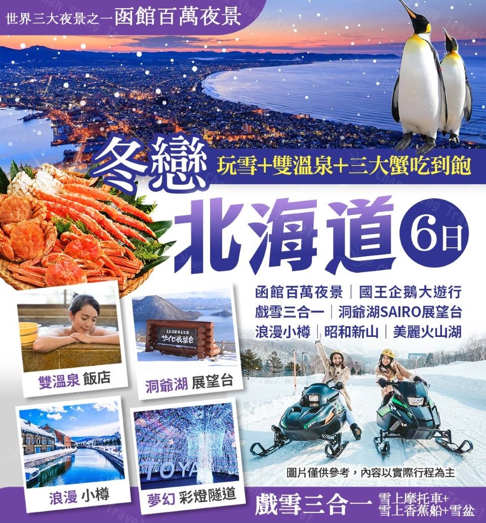 【北海道】北海道擁有得天獨厚的自然環境,吸引觀光客前往探索這塊北方大地,感受不同於本州的獨特魅力。四季分明的北海道,春櫻、夏綠、秋楓、冬雪各的有各風情,不論何時前往都很適宜。前往北海道除了參觀人氣觀光景點、泡溫泉、觀賞祭典、品嘗美食之外,還可以體驗大自然,呈現出多樣的風情,其獨特的地方是北海道最大的魅力。