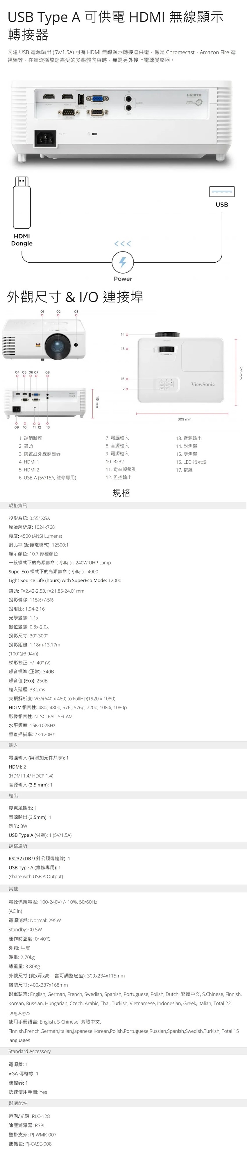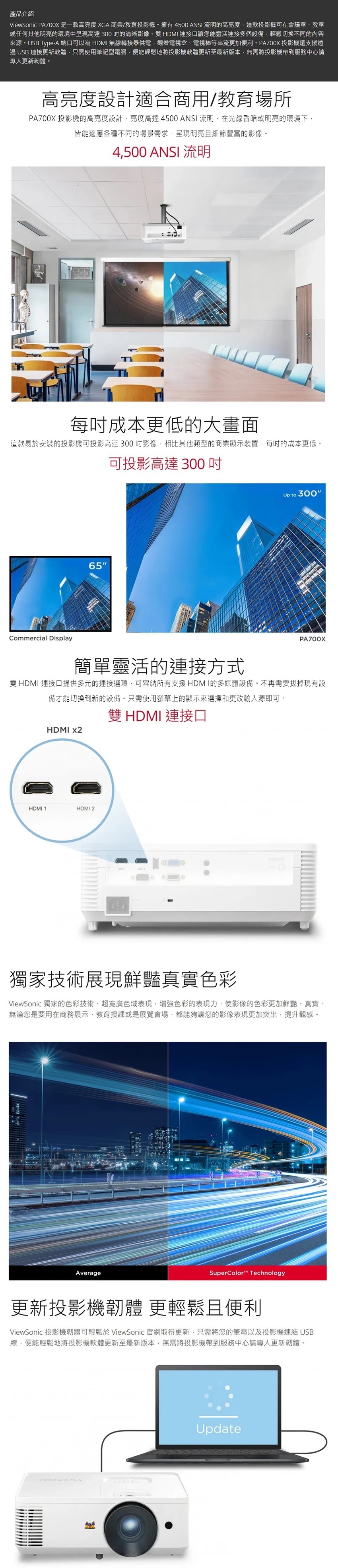 ViewSonic 優派 PA700X XGA 商用投影機 4,500 流明