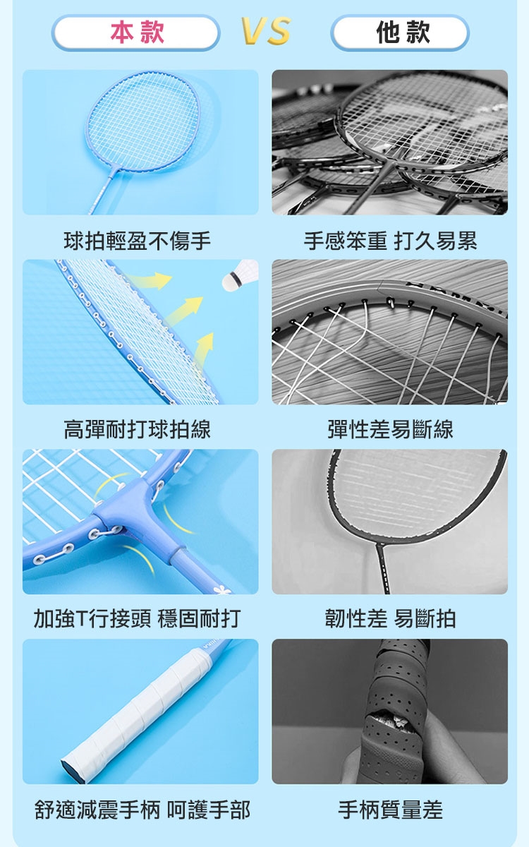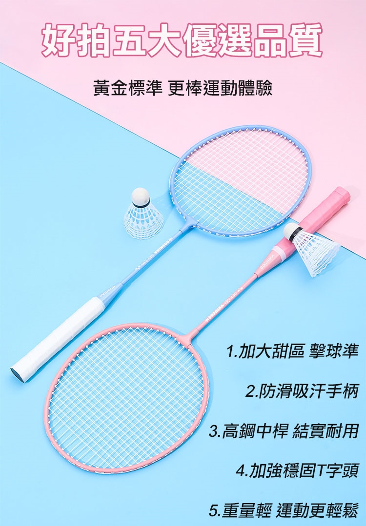 內容物:球拍x2、收納袋x1、尼龍羽球x3