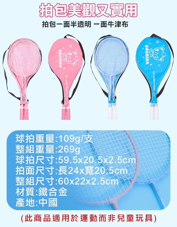 【WIDE VIEW】鐵合金兒童羽毛球拍2入組(附收納袋3顆羽球 羽球拍 練習球拍 訓練球拍 兒童球拍/BR-230)