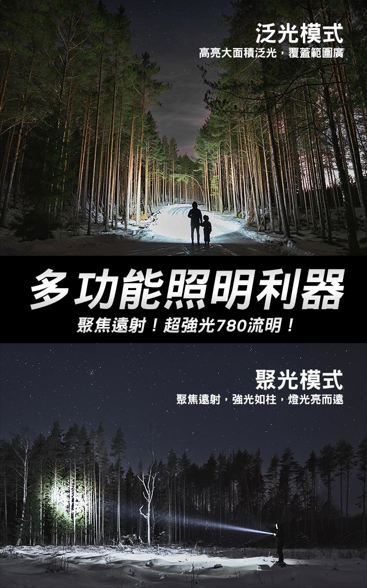 暗夜極光 15W LED 多功能手電筒/露營氛圍燈(TYPE-C/充電式/聚焦遠射/五段調光)