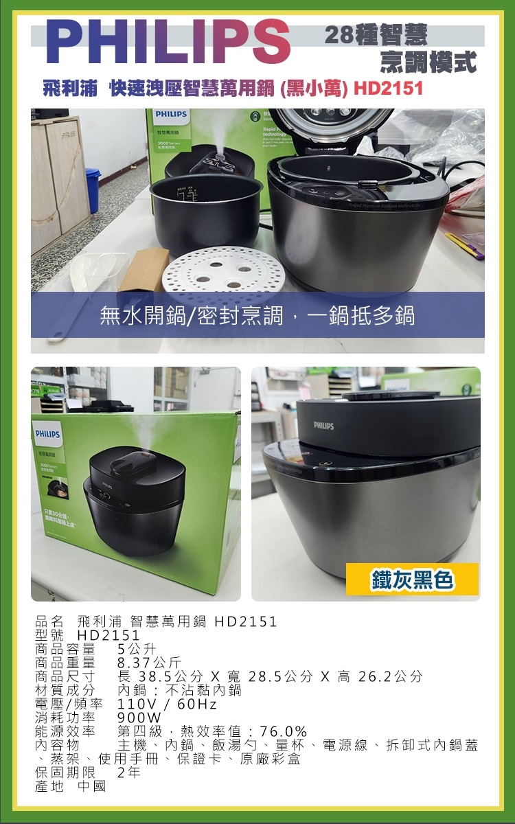 品名 飛利浦 智慧萬用鍋 HD2151