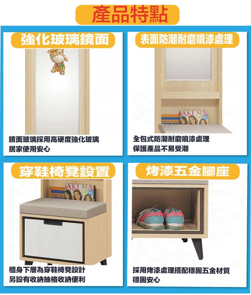 採用防蛀木心板+烤漆五金腳座+強化玻璃鏡面+貓抓皮革坐墊等安心材質製造