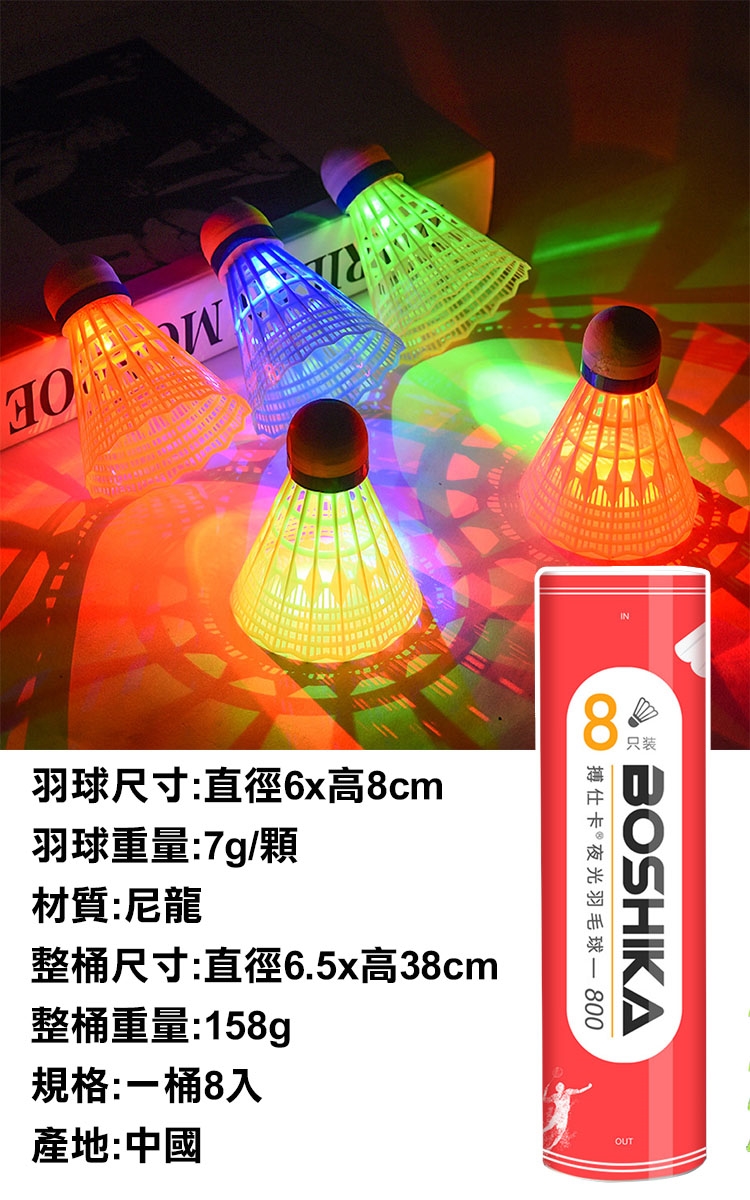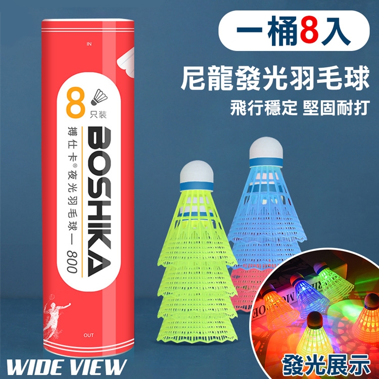 【WIDE VIEW】LED尼龍發光羽毛球1桶8入(LED羽毛球 夜光羽球 夜間打球必備/LNB-8)