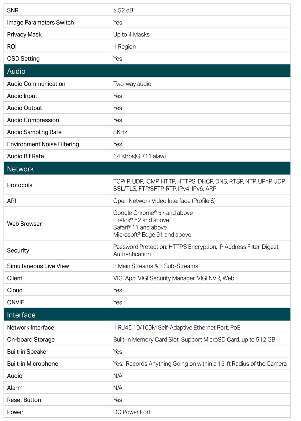 強化智慧影像:VIGI 處理視訊的專業技術,高度提升監控所需的質量,包括智慧IR、True WDR、3D DNR 和夜視等功能。