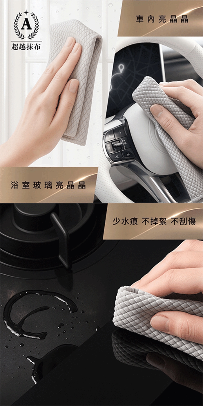 ★ 快速吸水,擦完少水痕、不掉絮、不刮傷
