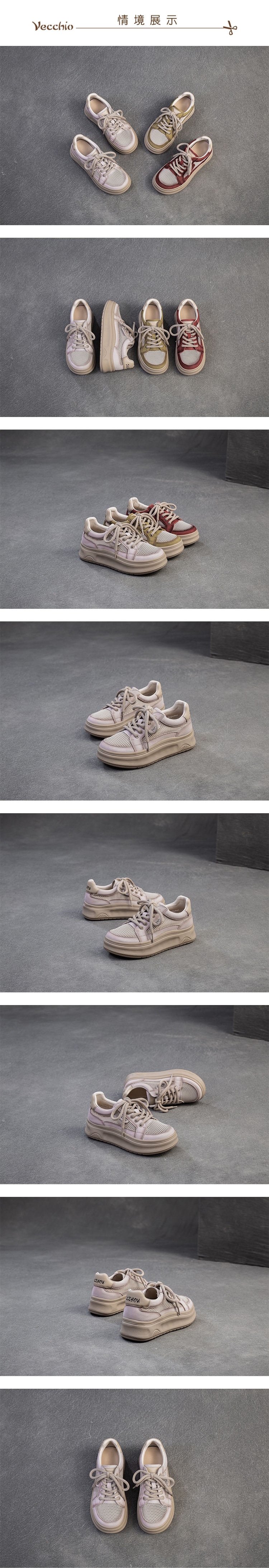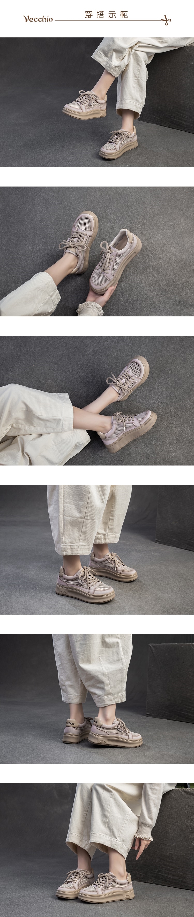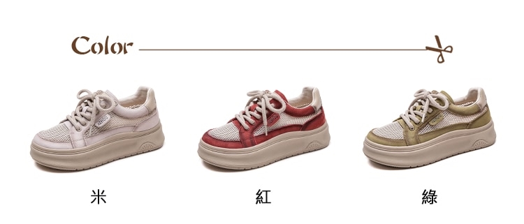 【VECCHIO】真皮網布厚底運動鞋/真皮頭層牛皮透氣大網眼網布拼接厚底運動鞋 女鞋 米
