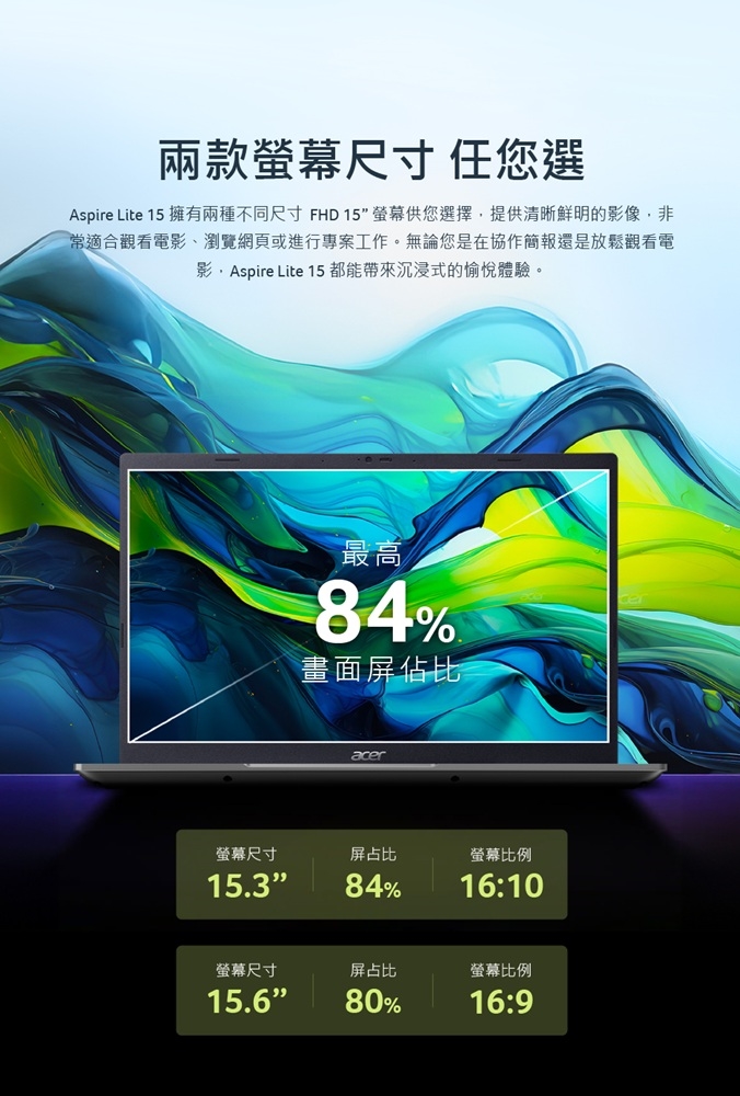 尺寸/規格:15.3" 16:10/IPS/120Hz/霧面