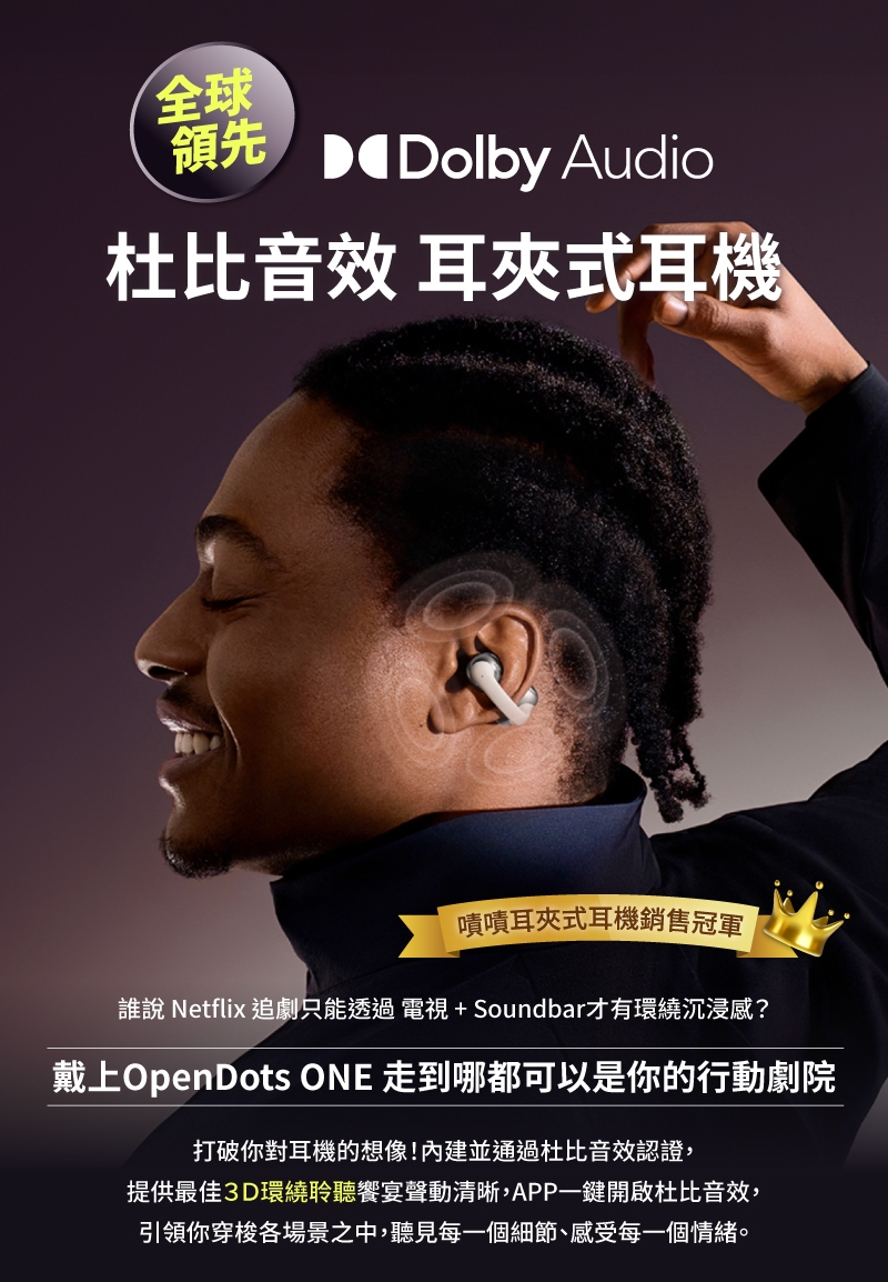 ● 全球首款「Dolby Audio 杜比音效」耳夾式耳機。