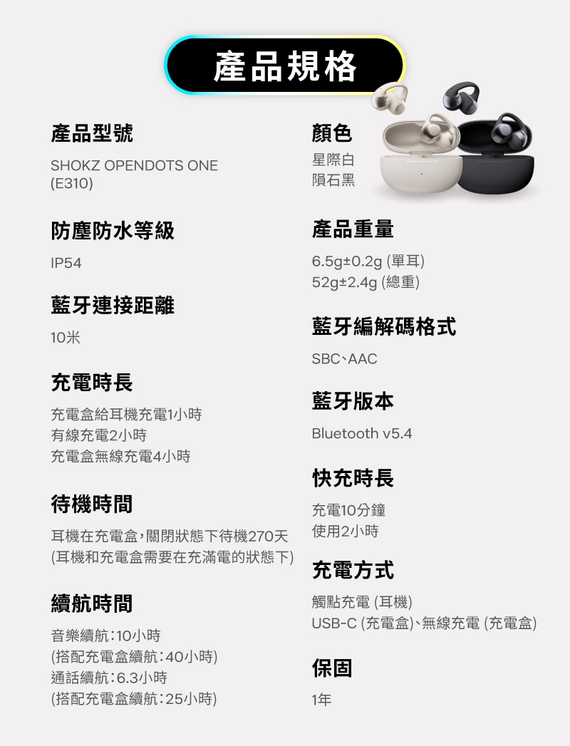 【SHOKZ】【杜比音效】OpenDots ONE E310 開放式耳夾藍牙耳機 (五色)