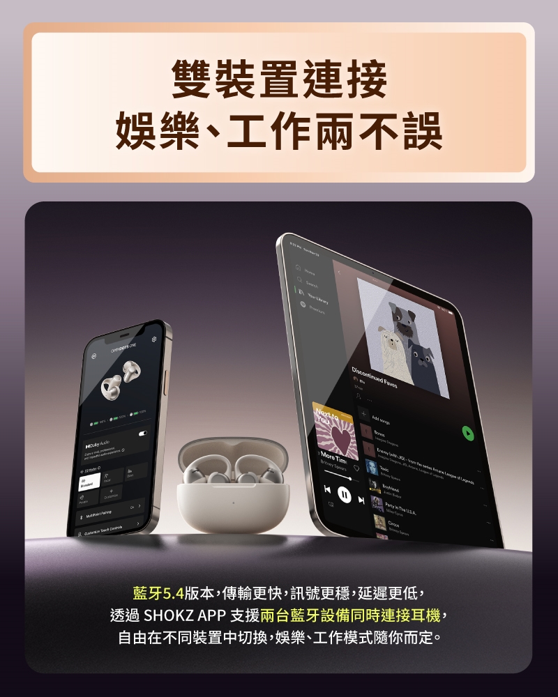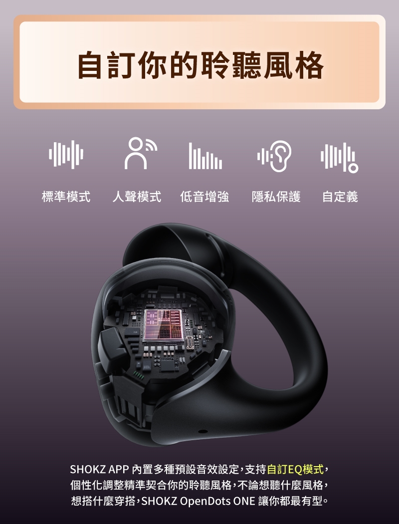 ● 搭配 SHOKZ App 使用,自訂 EQ 、按鍵功能及查找耳機。