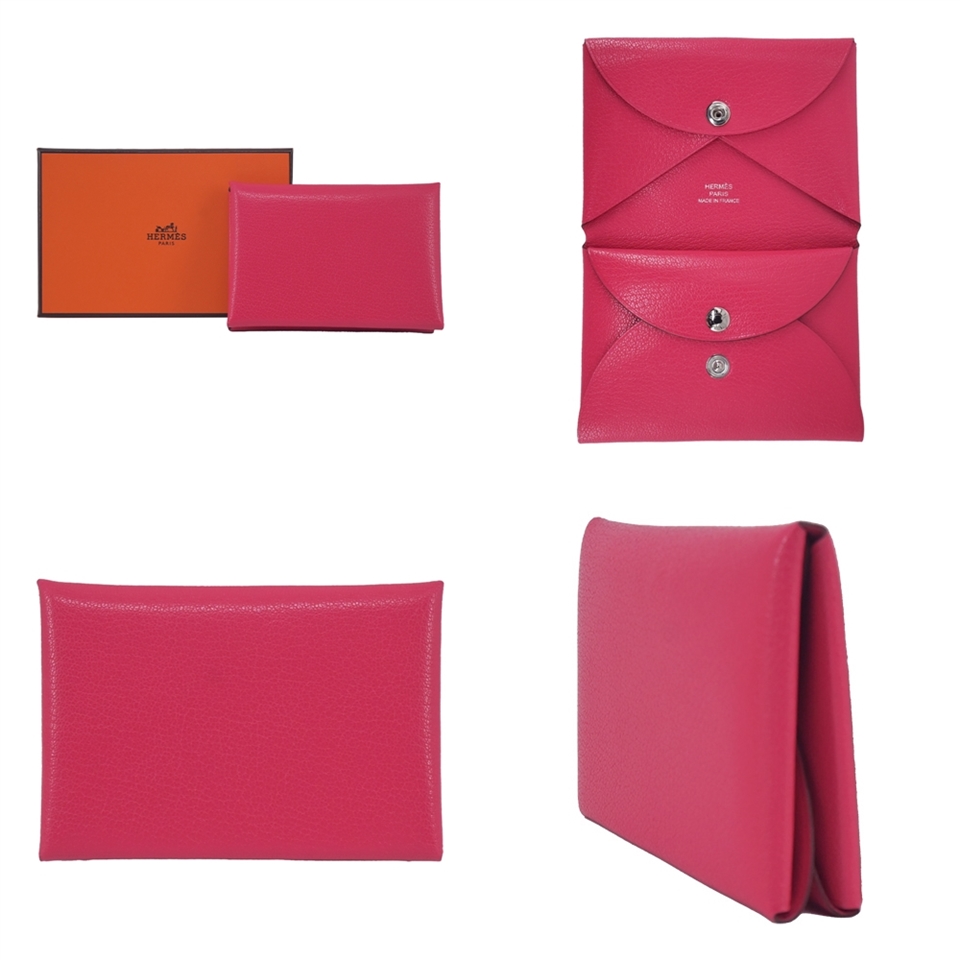 Hermes 愛馬仕 Calvi Duo雙層釦式山羊皮卡包(極緻粉)
