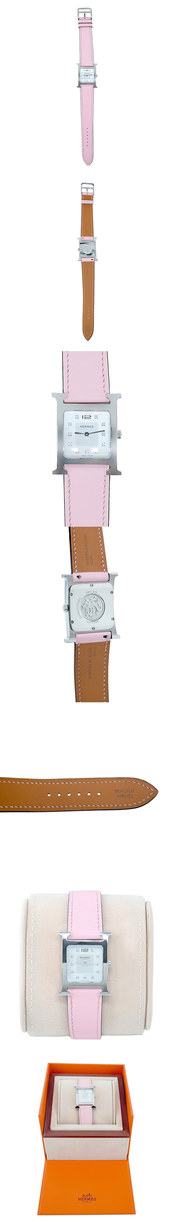 Hermes 愛馬仕 Heure H 鑲鑽小牛皮女士腕錶(26mm/玫瑰櫻花)