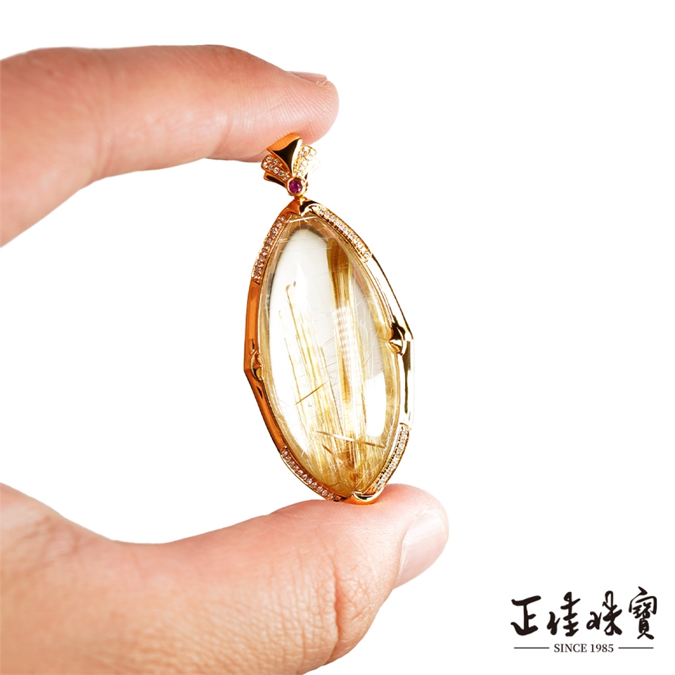 主角:金鈦晶 蒐藏級 豪鑲水滴老礦版鈦鈦晶 15.7g 金鈦晶吊墜|18K金鑽石