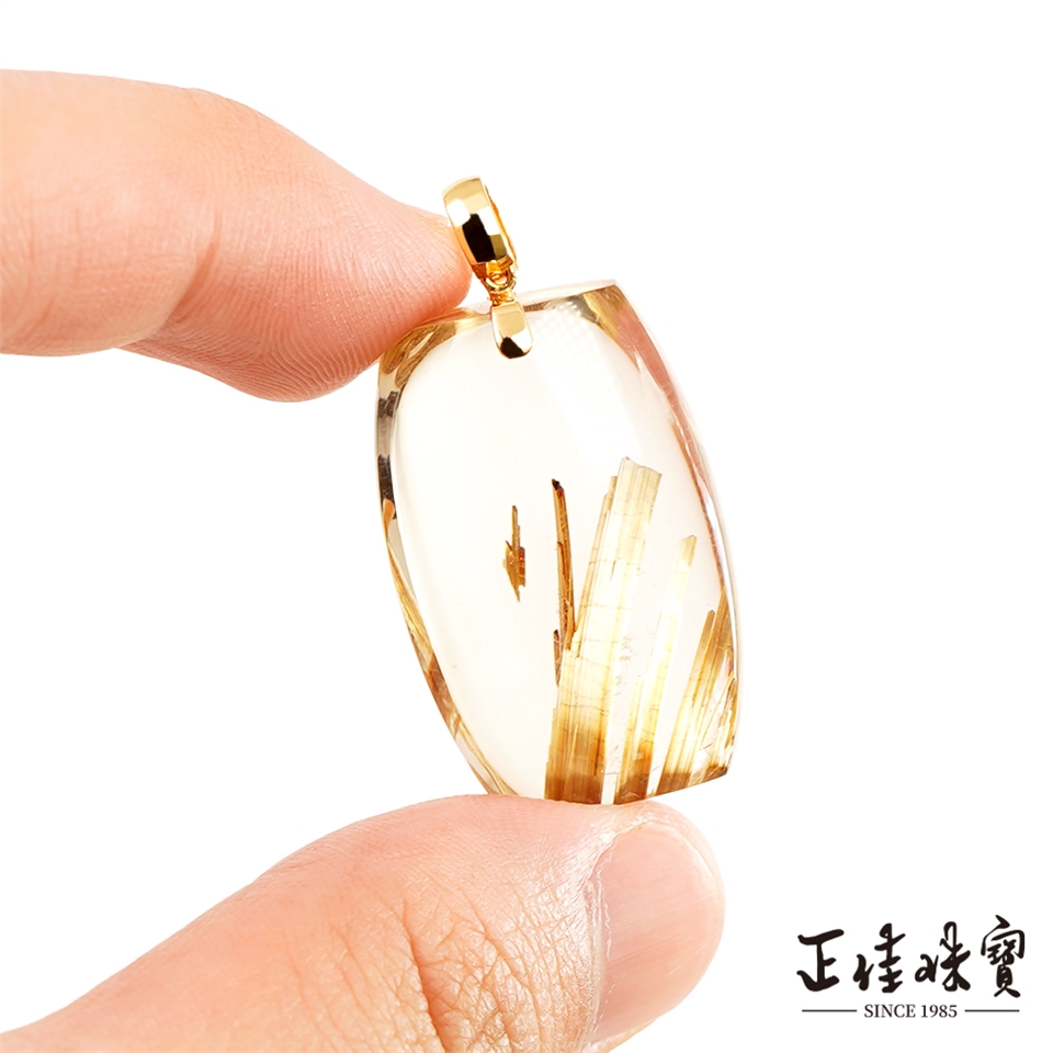 金鈦晶 超頂級 老礦版鈦鈦晶無事牌 14g 金鈦晶吊墜|18K金