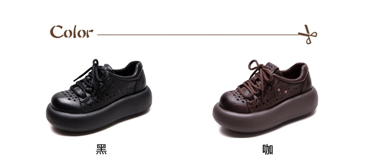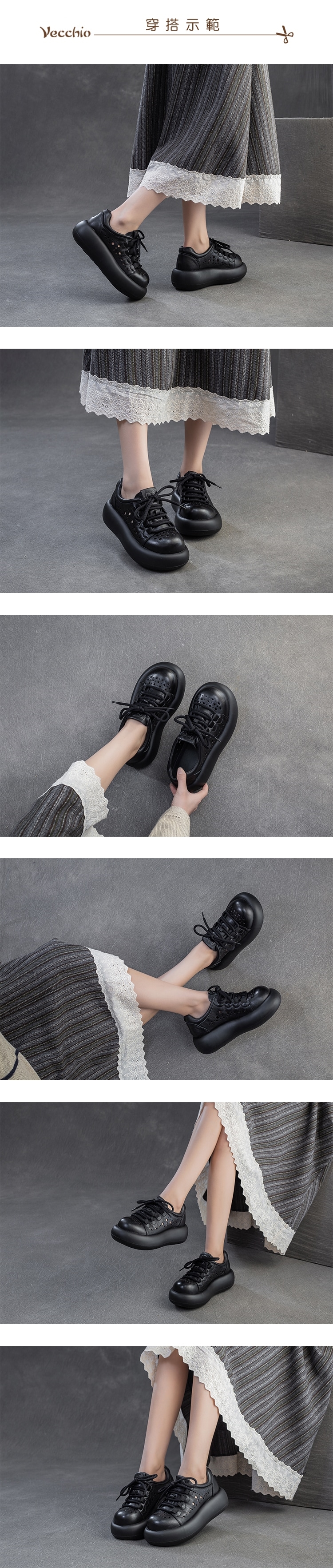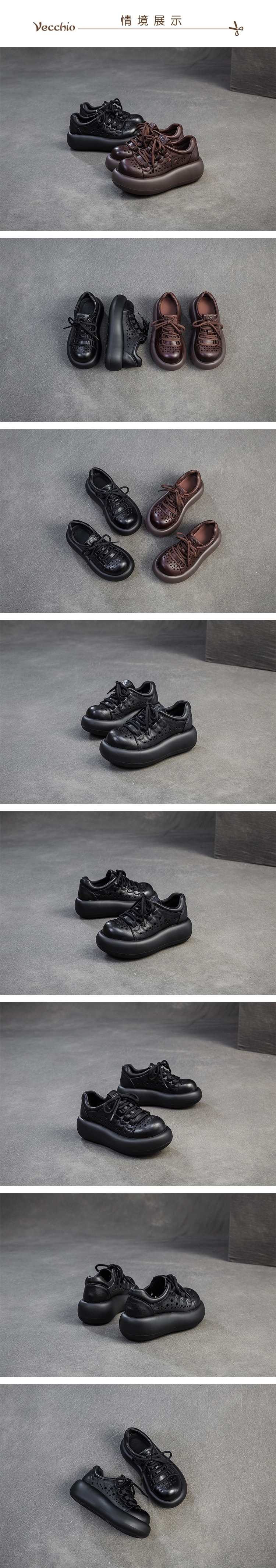 【VECCHIO】真皮縷空繫帶厚底休閒鞋/真皮頭層牛皮縷空洞洞繫帶厚底休閒鞋 女鞋 黑
