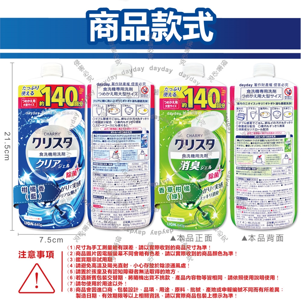 ●品名:CHARMY洗碗機專用雙重酵素凝膠洗碗精補充瓶