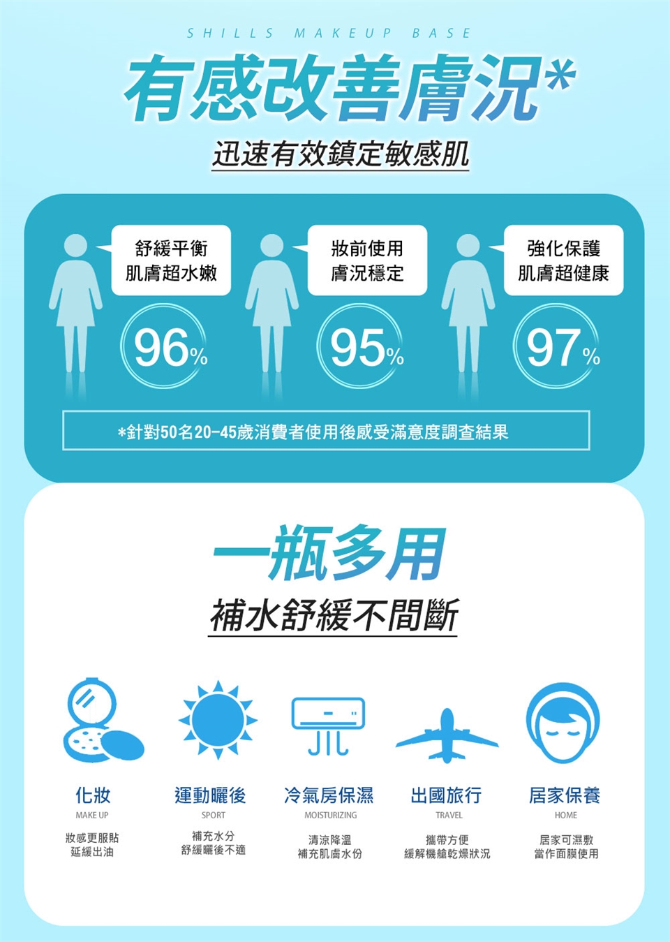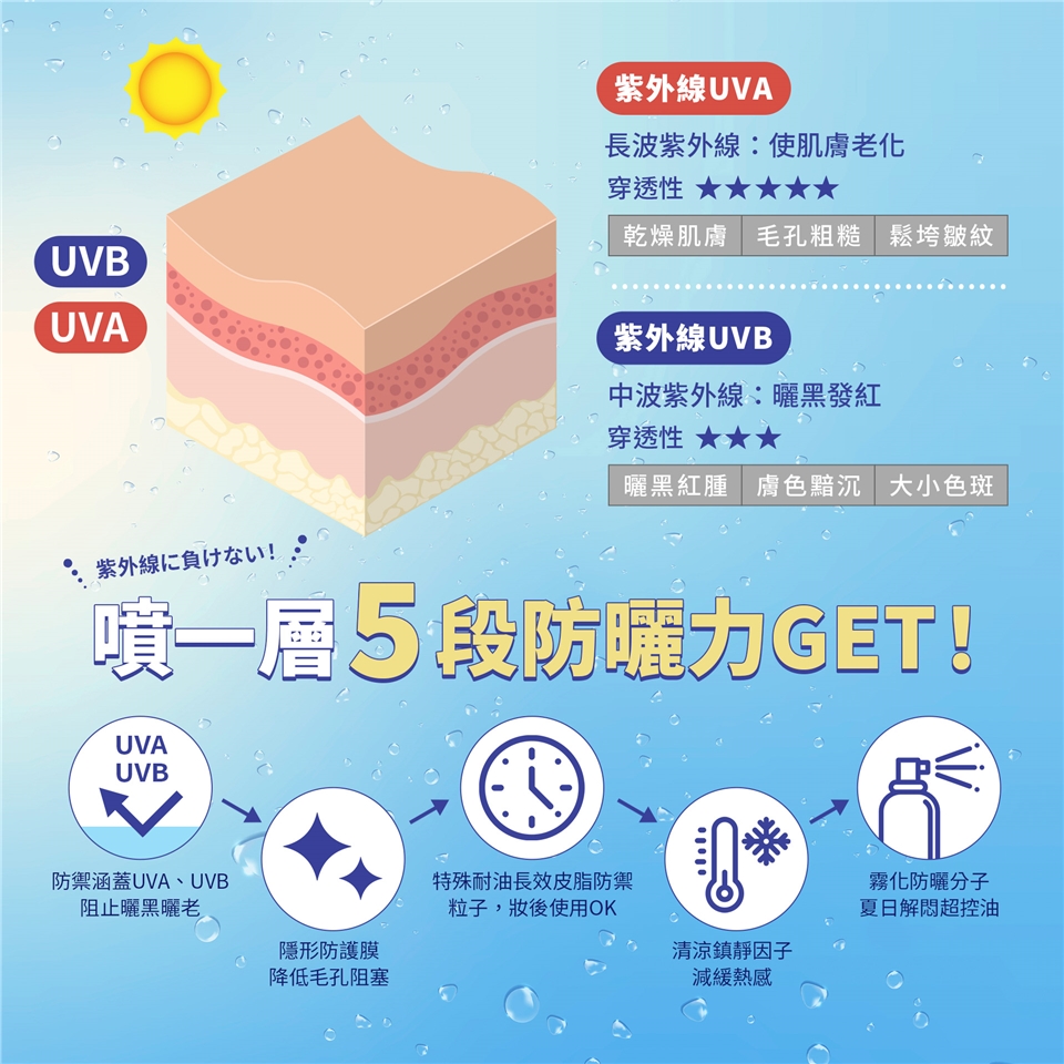 使用前請上下搖晃均勻,遠離肌膚10~15cm噴塗該產品,然後再輕輕地拍勻。