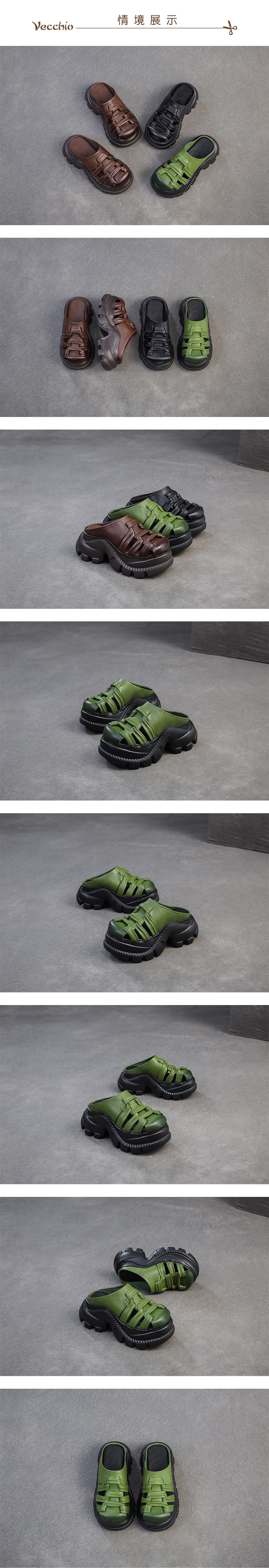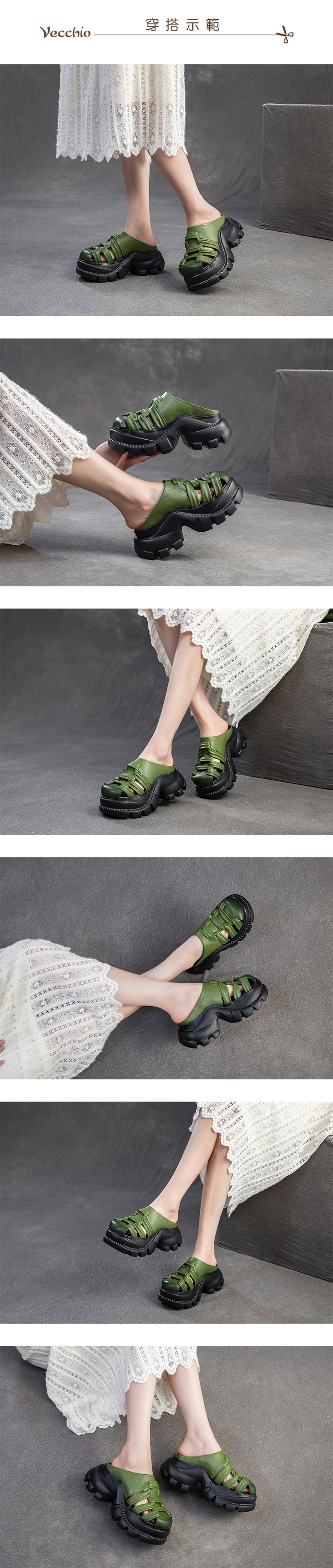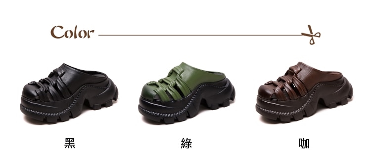 【VECCHIO】真皮編織鬆糕厚底包頭拖鞋/真皮頭層牛皮復古手工編織縷空鬆糕厚底包頭拖鞋 女鞋 綠