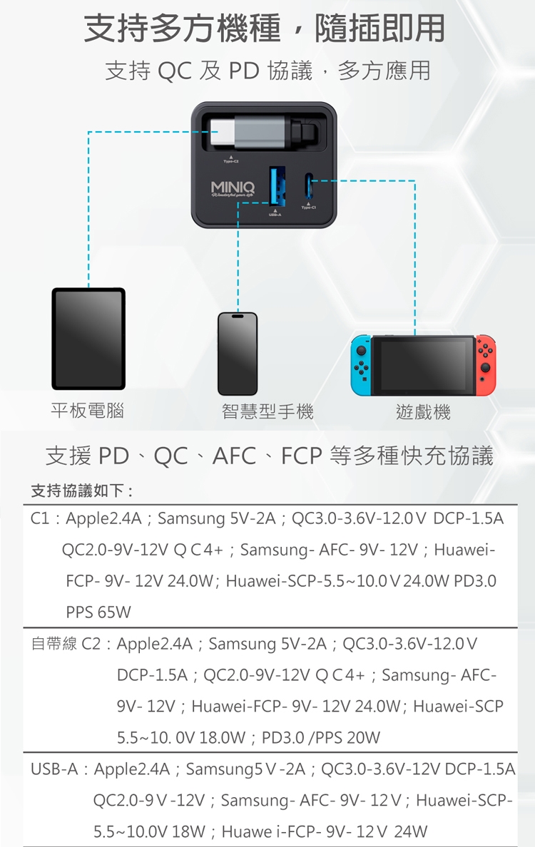 PD、QC 等主流協議全面兼容