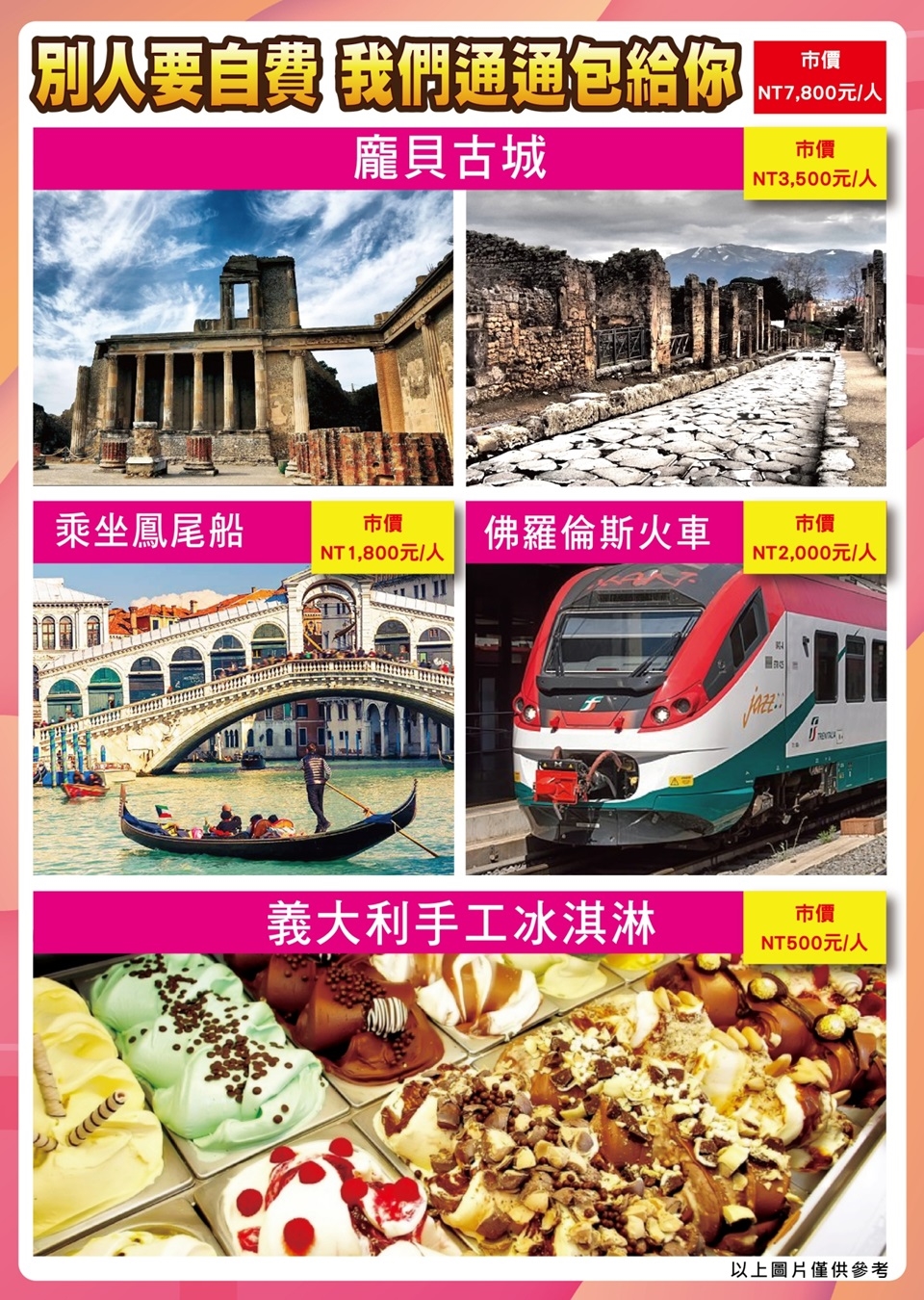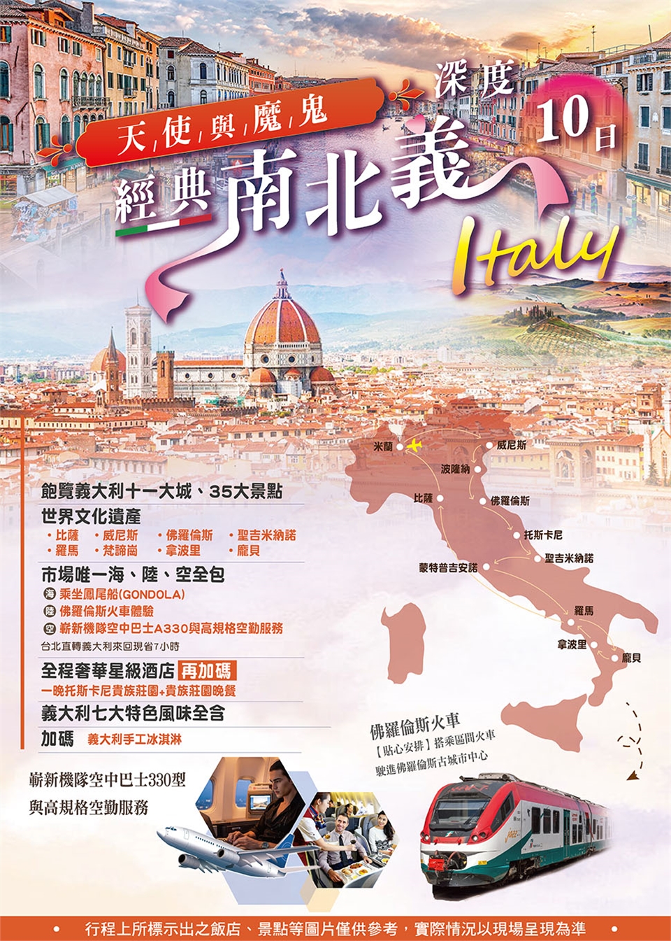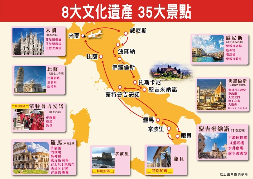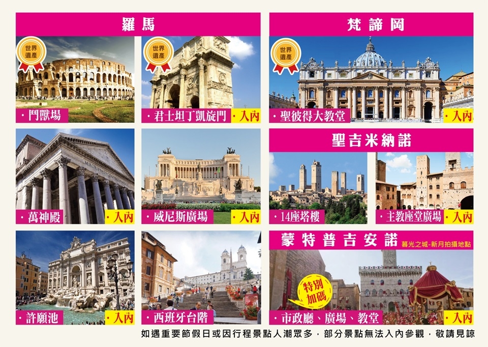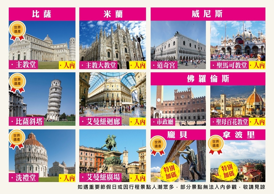 由於航班抵達時間不同於義大利行程部分將調整順序.但不影響遊玩景點多寡.
