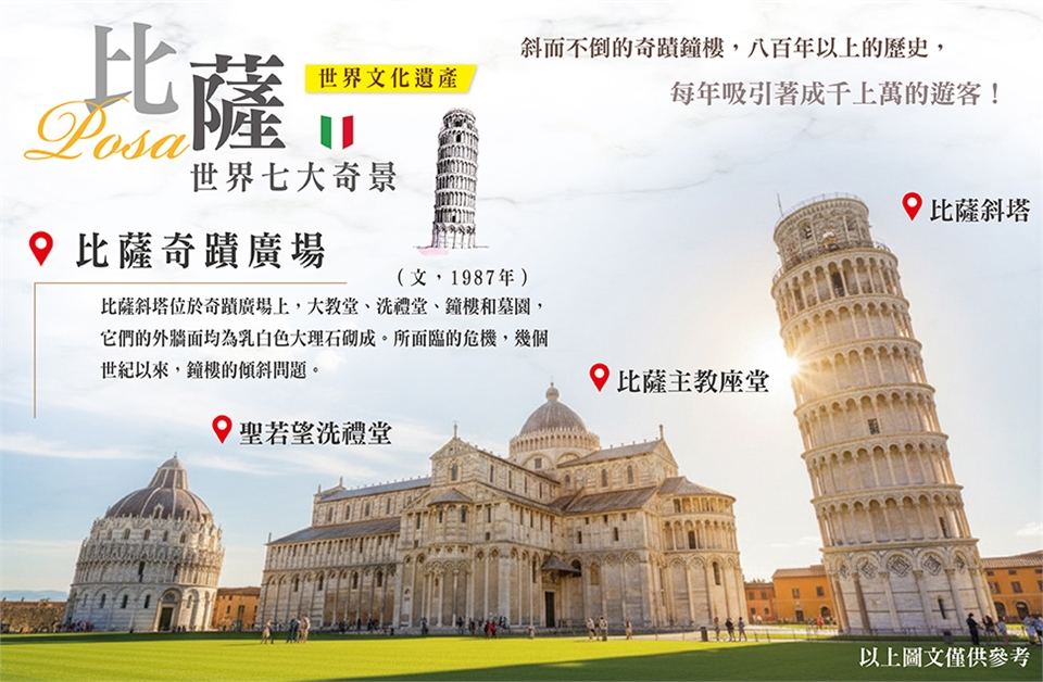 今早前往奇蹟古城-【比薩】,參觀世界七大奇景及週遭名勝!斜而不倒的奇蹟古城 ,已有八百年的歷史,每年吸引著成千上萬的遊客前往參觀,在美麗如茵的奇蹟廣場上,矗立著主教堂、洗禮堂與鐘樓斜塔,是以雪白大理石為主建材所建築而成,華麗而雄偉,象徵著比薩在鼎盛時期,是多麼的繁榮與富裕。後前往【菲登扎購物村】整體設計受威爾第歌劇的舞台佈景所啟發。村內餐廳提供傳統義大利特色菜單,選用當地葡萄酒與佳餚,將典型的義大利風格完整呈現,是購物、美食與當地文化的完美結合。設有逾120家義大利設計師與國際品牌專賣店,全年提供建議零售價三折的優惠。 早餐:飯店內早餐 午餐:方便逛街;發放10歐元餐費 晚餐:米蘭風味 |