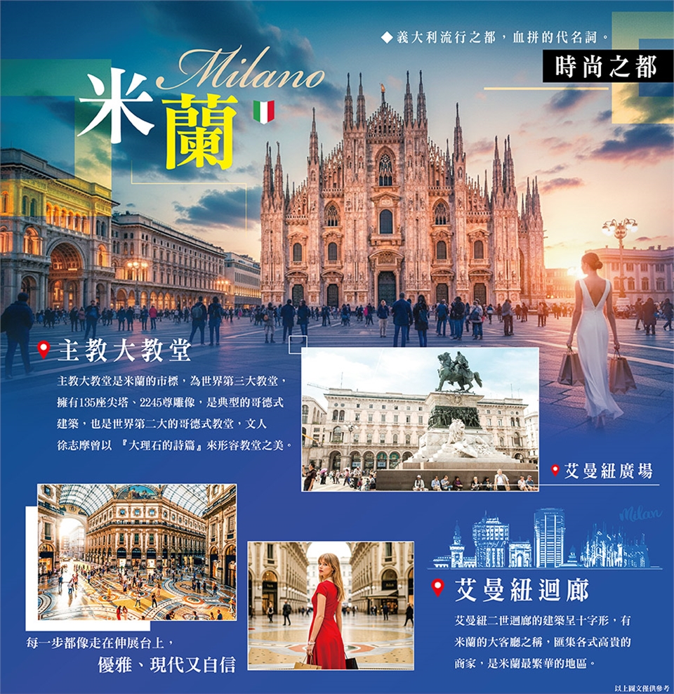 接著我們迎向流行之都~米蘭,享受藝術與時尚的洗禮。主教大教堂是米蘭的市標,為世界第三大教堂,擁有135座尖塔、2245尊雕像,是典型的哥德式建築,也是世界第二大的哥德式教堂,文人徐志摩曾以『大理石的詩篇』來形容教堂之美。艾曼紐二世迴廊的建築呈十字形,有米蘭的大客廳之稱,匯集各式高貴的商家,是米蘭最繁華的地區。密集的購物圈幾乎是絕無僅有的,這裡是引領時尚的流行神殿,也是名牌時尚的旗艦,當然更是名牌的重鎮。傍晚出發前往威尼斯。 早餐:機上 午餐:方便遊玩敬請自理 晚餐:義式風味餐 |