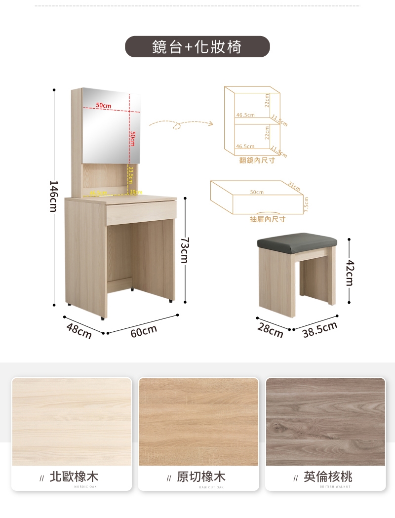 梳妝桌:60*48*146CM