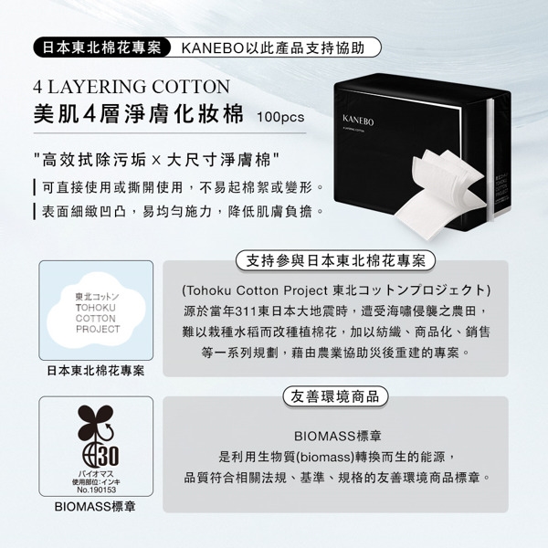 2.KANEBO 美肌四層淨膚化妝棉(100枚)