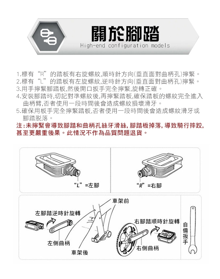 *請注意鑑賞期非試用期,若收到商品經檢察時發現有瑕疵或有任何疑慮時請勿騎乘使用。