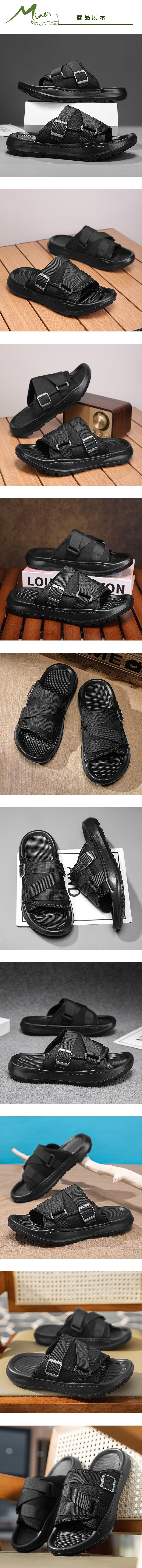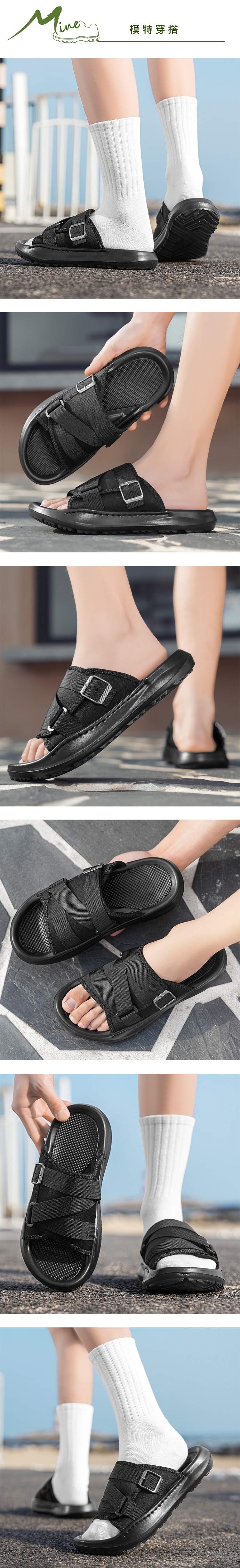 【MINE】布面織帶戶外沙灘拖鞋/舒適布面織帶拼接戶外休閒沙灘拖鞋 男鞋 黑