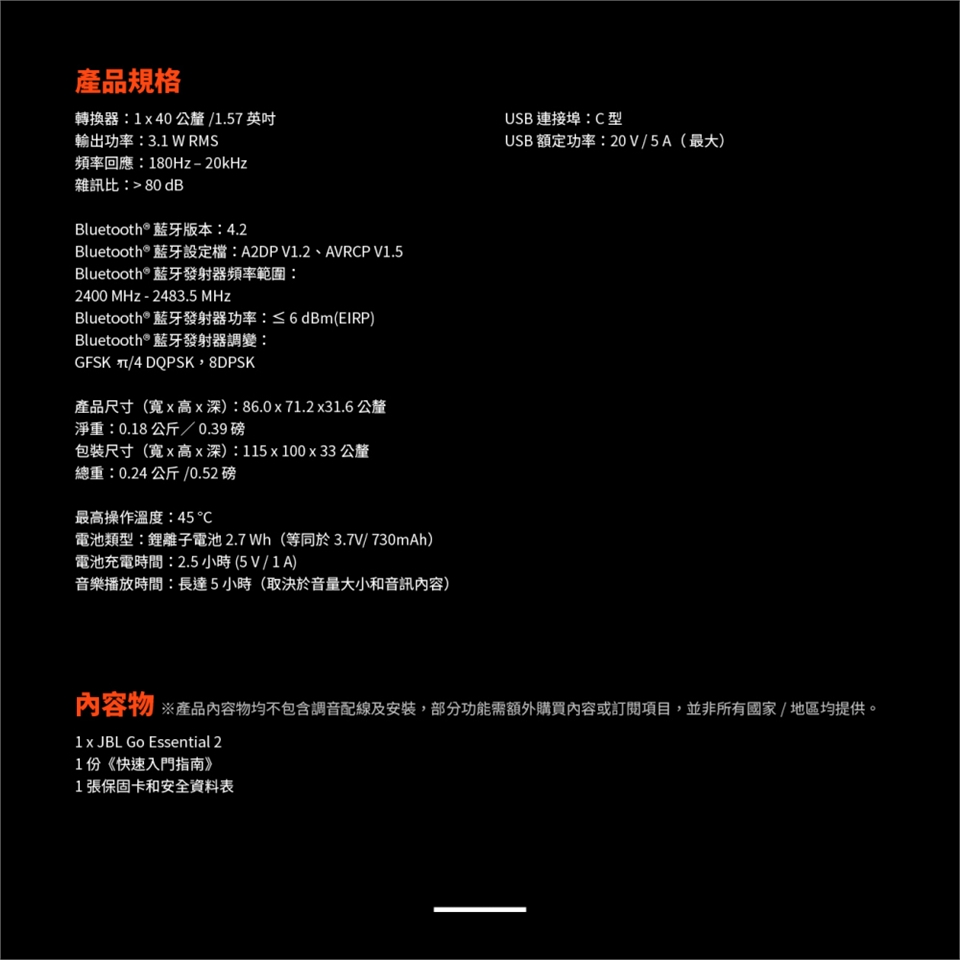 ※防水等級,實驗的水為清水,故不適用於其他液體,如肥皂水、海水等特殊液體可能造成防水功能降低或失效