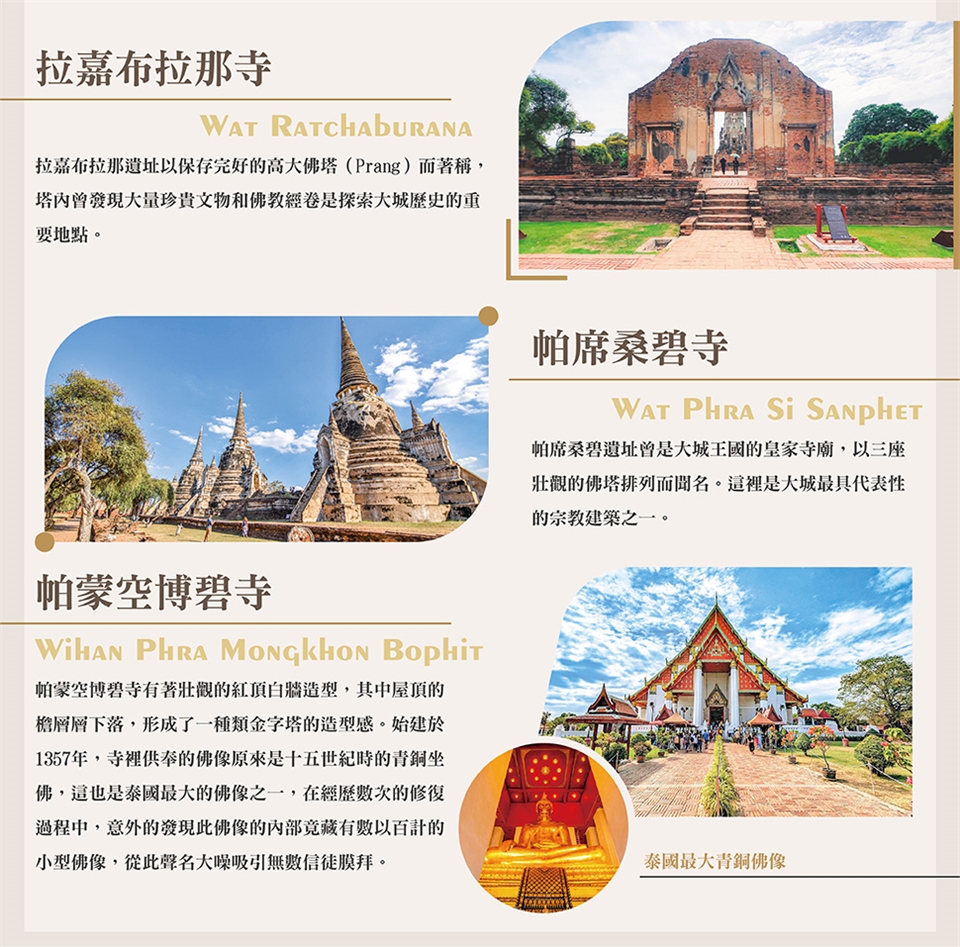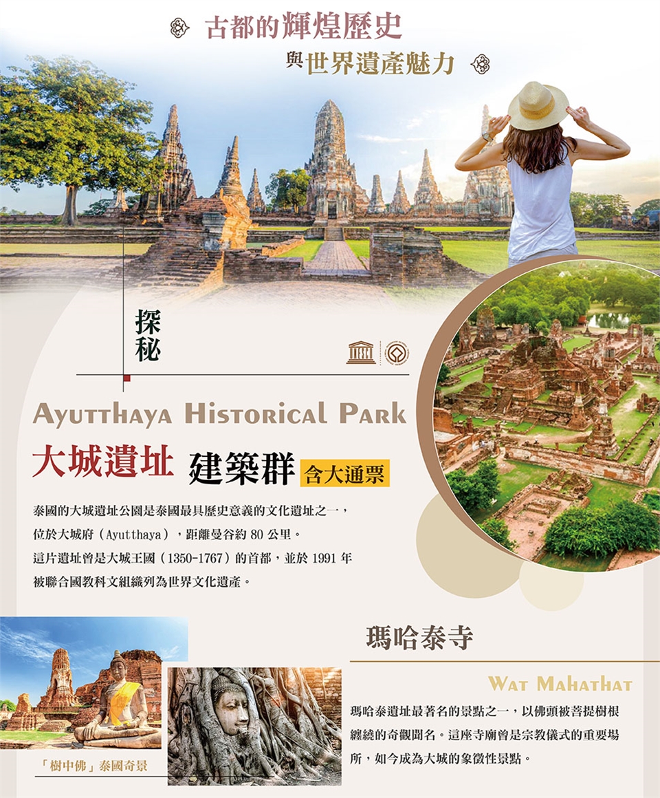 泰國的大城遺址公園(含大通票)是泰國最具歷史意義的文化遺址之一,位於大城府(Ayutthaya),距離曼谷約 80 公里。這片遺址曾是大城王國(1350-1767)的首都,並於 1991 年被聯合國教科文組織列為 世界文化遺產。 早餐:酒店內 午餐:古城風味 晚餐:流水大頭蝦吃到飽 |