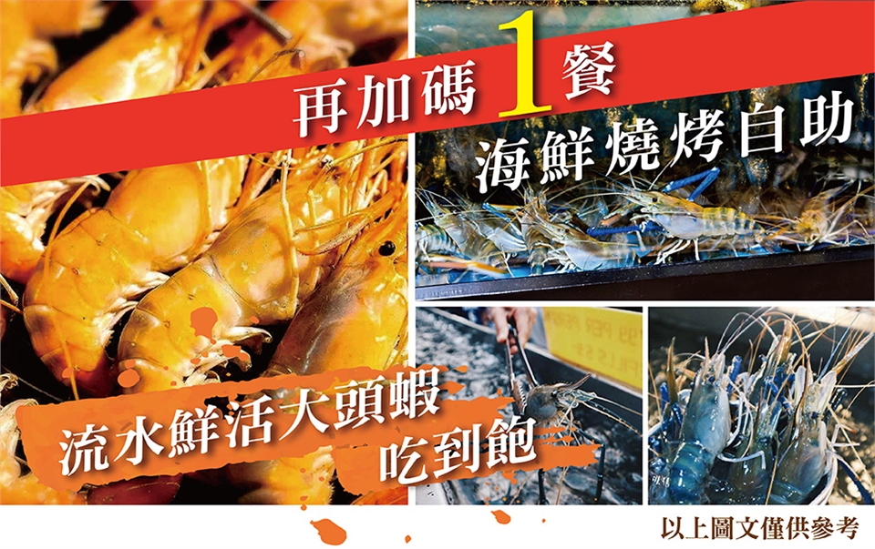 10餐全包再加碼一餐~海鮮燒烤自助(鮮活大頭蝦吃到飽) 市價1200