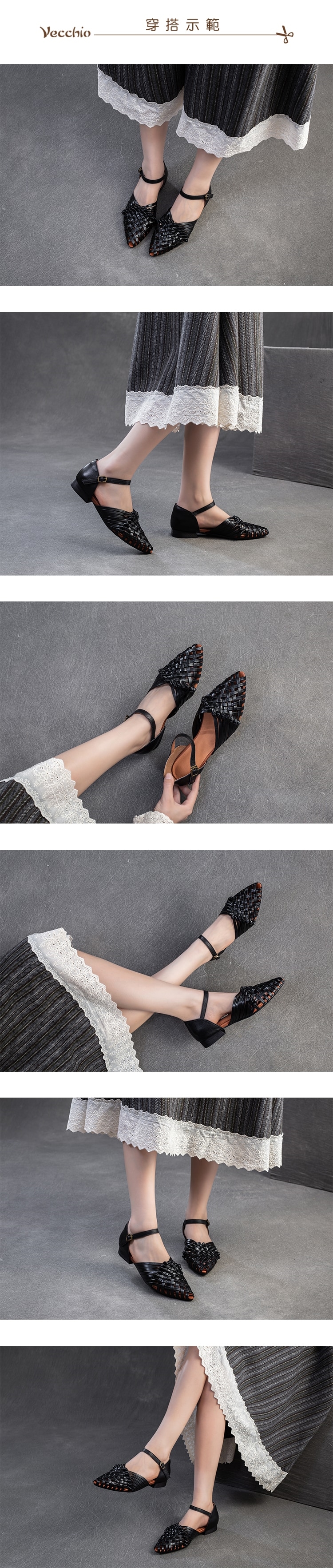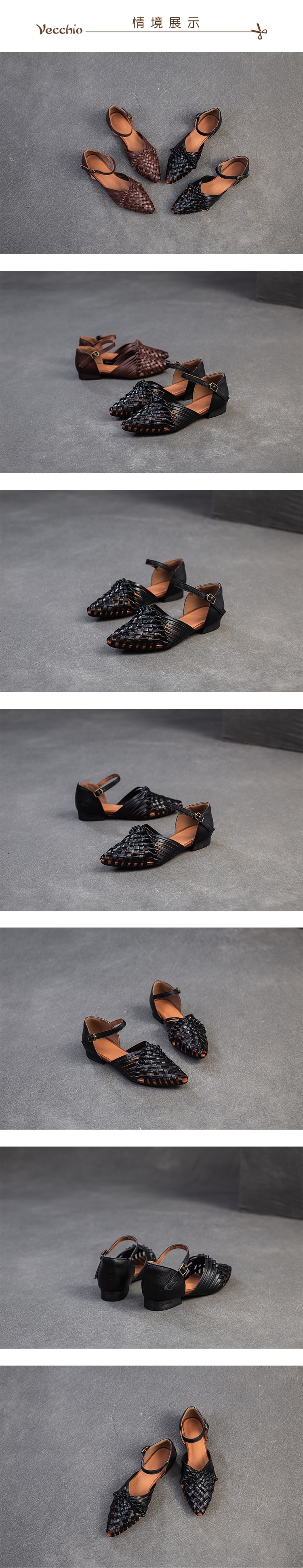 【VECCHIO】全真皮尖頭編織低跟涼鞋/全真皮頭層牛皮尖頭立體編織縷空低跟涼鞋 女鞋 黑