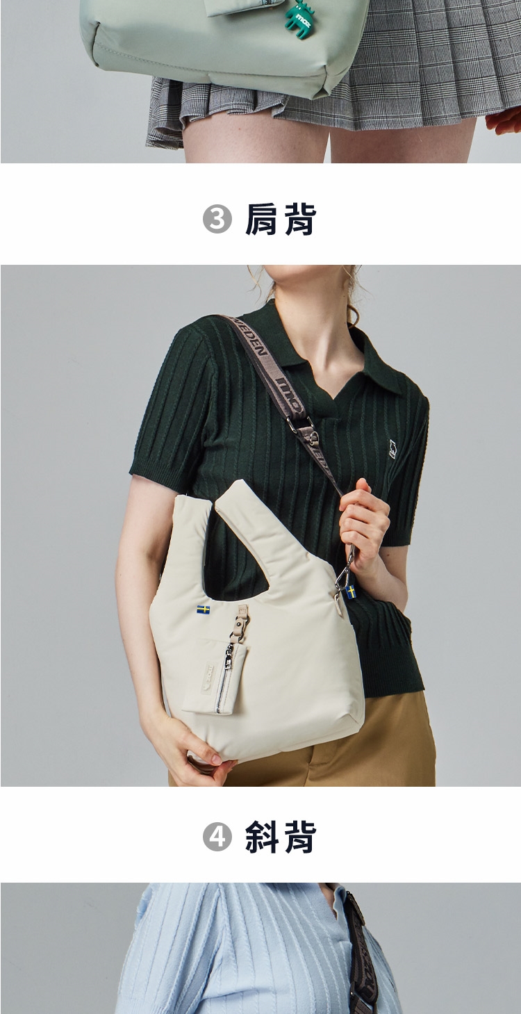 可拆式斜背帶搭配品牌LOGO織紋,穿搭更有個性層次