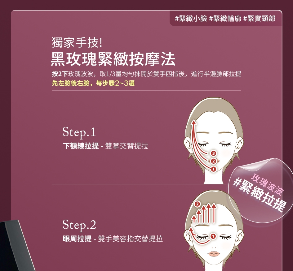 於洗淨臉後、化妝水後,取適量塗抹於肌膚,為達較佳使用效果,可用指腹由內而外輕輕按摩臉頰,幫助肌膚深層吸收。