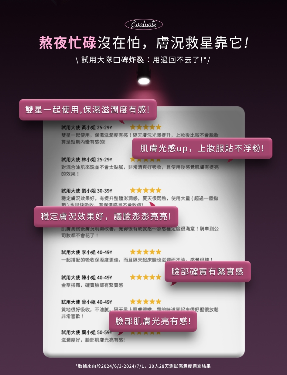 •加強用法:欲加強保養肌膚部位,可厚敷5-10分鐘,後續以化妝水或精華液擦拭或輕柔按摩至吸收即可。
