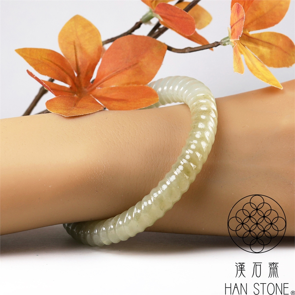 玉鐲在珠寶文化中歷久彌新,而麻花鐲以其獨特的「絞絲紋」設計,成為工藝與美學交融的典範。相較於傳統圓條鐲的簡約渾圓,麻花鐲以細膩繁複的螺旋紋路脫穎而出,每一道扭轉的線條皆需匠人精心雕琢,彷彿將絲線交纏的靈動感凝結於玉石之中,展現出極致的工藝難度與藝術性。