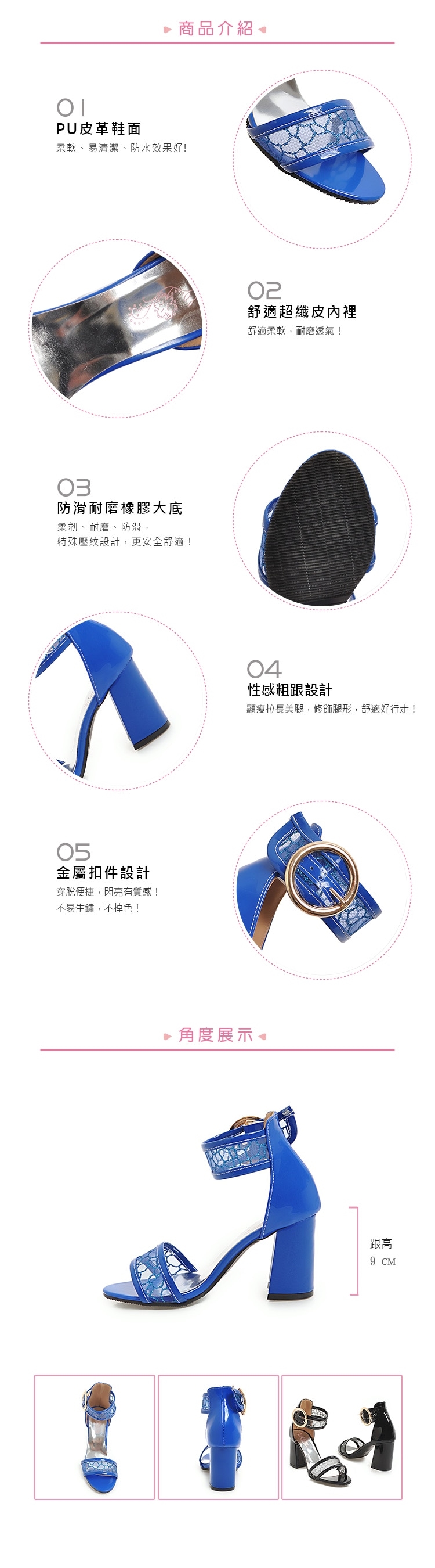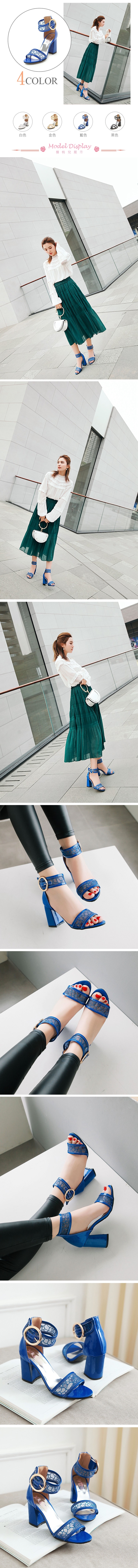 【KISSXXX】網紗繞踝粗跟涼鞋/透明網紗寬版一字帶繞踝粗跟涼鞋 女鞋 藍