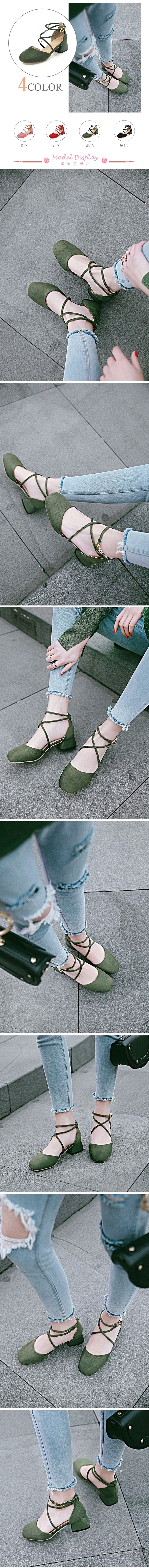 【KISSXXX】小方頭粗跟涼鞋/小方頭交叉細繩繞帶造型粗跟涼鞋 女鞋 綠