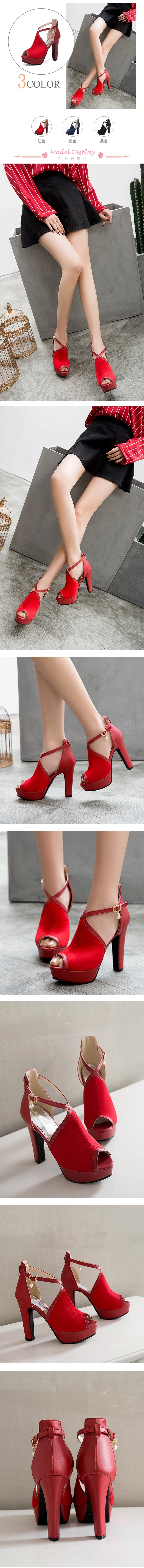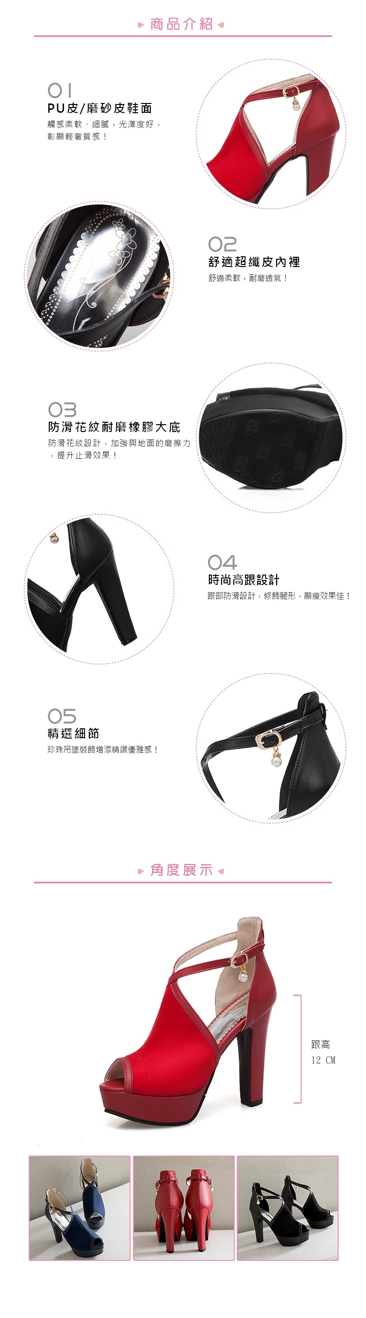 【KISSXXX】魚嘴交叉防水台高跟涼鞋/美腳效果魚嘴交叉縷空防水台高跟涼鞋 女鞋 紅