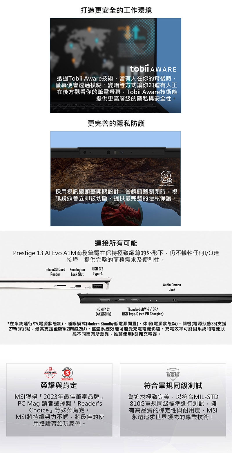 ●I/O連接埠:2x Thunderbolt™ 4 (DisplayPort™/ Power Delivery 3.0)
