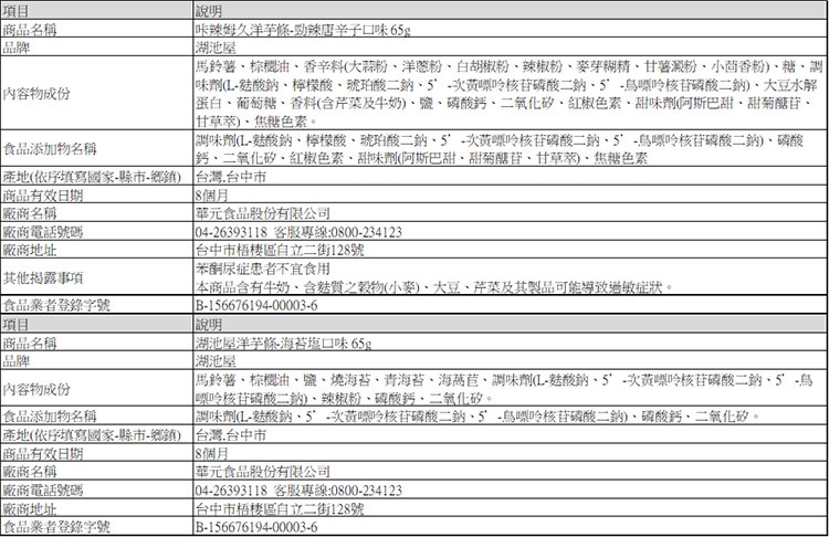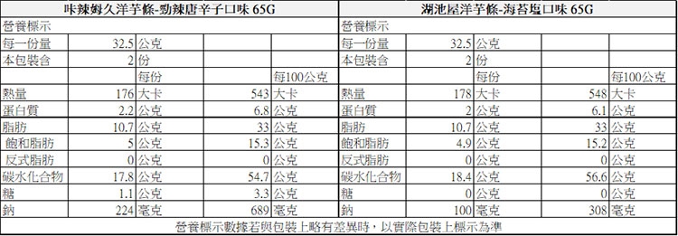 營養標示與商品成分標示請參考下方圖片:
